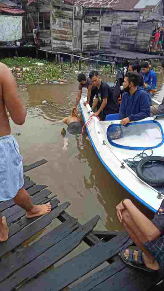 Kasatpolair Polresta Banjarmasin AKP Christugus Lirens mengatakan, mayat tersebut ditemukan saat tersangkut di kolong rumah warga di bantaran sungai.