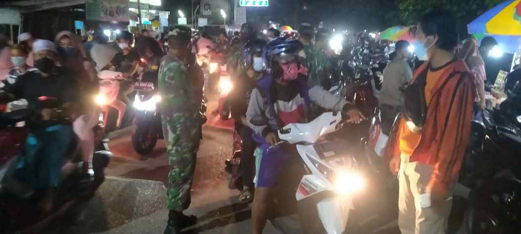 Hal ini dilakukan sesuai dengan jam operasionalnya yang buka dari sore hari sehingga tutup sekitar pukul 21.00 WIita, Selain itu sejumlah anggota juga membagi masker secara cuma-cuma kepada warga tidak memakai.