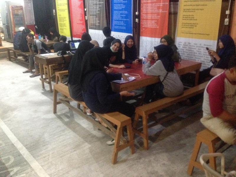 Arif, koordinator Kampung Buku, menjadi pemandu diskusi, dihadiri oleh puluhan anak muda dan mahasiswa, termasuk peserta tetap diskusi kampung buku yang tekun hadir dalam setiap kegiatan. Karena kampung buku memang dihajatkan sebagai ruang literasi bagi anak muda, agar semakin mengerti tentang berbagai perkembangan pengetahuan, sambil duduk santai minum kopi atau makan pizza rukun.