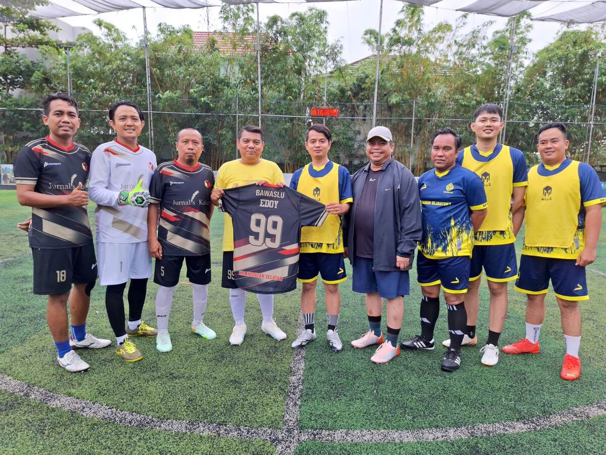 Menjelang Pilkada, Jurnalis Kalsel dan Bawaslu Kalsel Main Bola Bareng