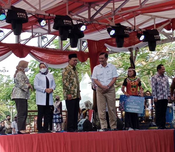 Banjarmasin, BARITO – Menteri Koordinator Bidang Kemaritiman dan Investasi Indonesia (Menko Marinves) Luhut Binsar Pandjaitan membuka secara resmi membuka Gerakan Nasional Bangga Buatan Indonesia (Gernas BBI) di Siring 0 Km, Banjarmasin Kalsel Tahun 2022, Jumat (22/7/2022. Hadir Gubernur Kalsel H Sahbirin Noor, Menteri Dalam Negeri Tito Karnavian, dan pejabat lainnya.