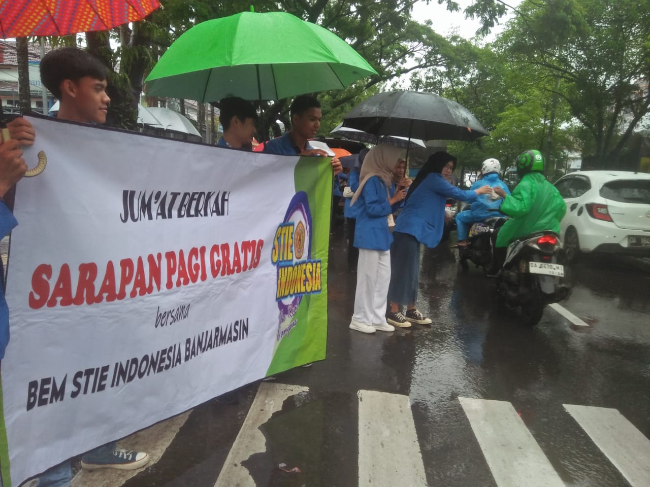 Ketua STIE Indonesia Banjarmasin Dr Yanuar Bachtiar, SE, M.Si mengatakan, indahnya berbagi dan kepedulian terhadap warga tak mampu dan pengendara melintas diberi nasi bungkus. “Jumat berkah ini merupakan momentum amal sodaqah sekaligus telah selesainya perhitingan Pemilu Pilpres dan Pilleg yang berjalan aman lancar dan terkendali,”sebutnya.
