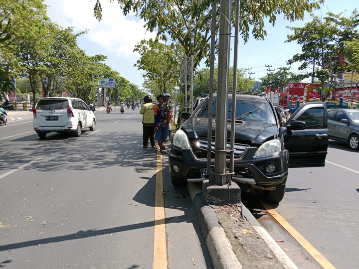 Banjarmasin, BARITOPOST.CO.ID – Diduga karena menghindari sepeda motor, mobil Honda CRV warna hitam metalik No Polisi DA 1415 TAY ini menabrak pembatas Jalan Akhmad Yani Km 5 Banjarmasin Timur, Minggu (25/6/2023) pagi sekitar pukul 10.30 Wita. Akibatnya sopir bernama Muhammad Abdul Hakim (24) mengalami luka di dahi sebelah kiri lantaran juga menabrak tiang lampu di depan Kantor Samsat Banjarmasin.