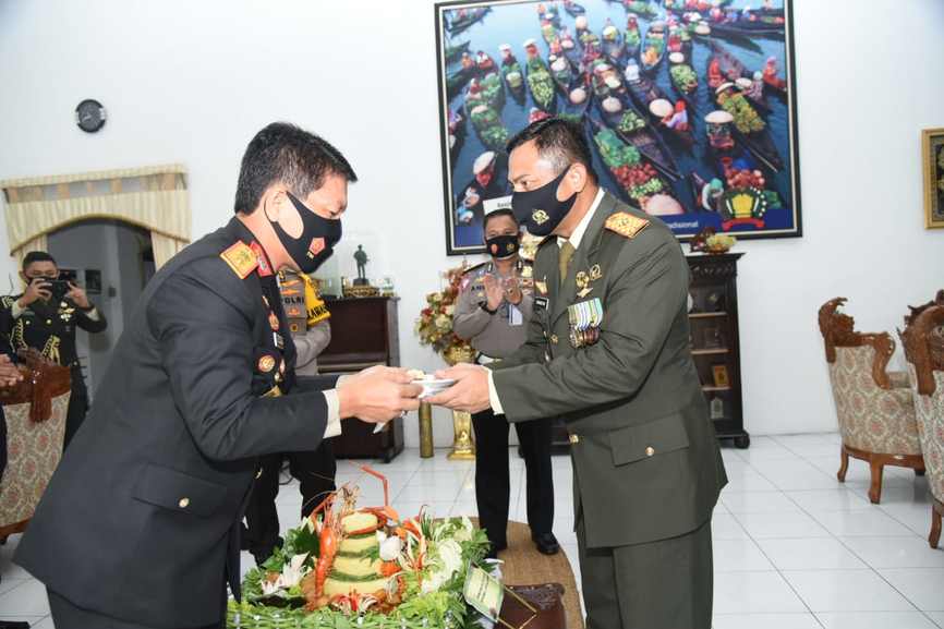 Pada kesempatan itu Kapolda Kalsel menyerahkan nasi tumpeng langsung kepada Danrem sebagai kado spesial simbol sinergitas TNI/Polri