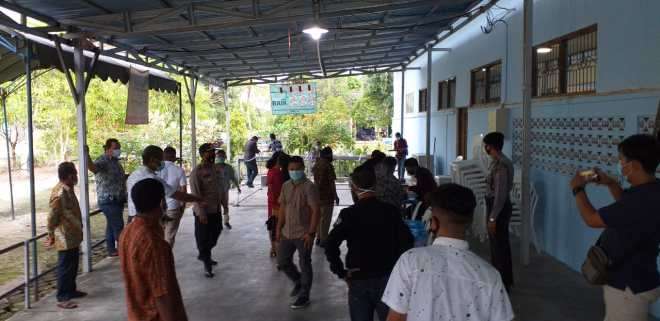 Polres Banjarbaru,Polda Kalsel – Personil Polsek Banjarbaru Barat Jajaran Polres Banjarbaru, Polda Kalsel. Kapolsek Banjarbaru Barat AKP Andri Hutagalung, S.Ab, M.AP, monitoring personil gabungan melakukan pengamanan ibadah perayaan Natal 2020, di Gereja Khatolik Santo Yohanes Pemandi Kelurahan Syamsudin Noor Kecamatan Landasan Ulin Kota Banjarbaru. Jumat (25/12/20).