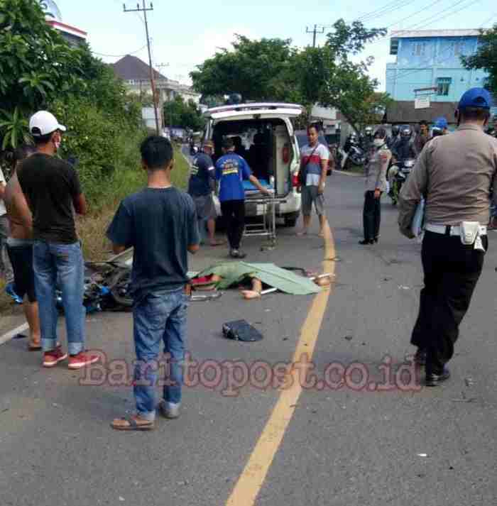 Pelaihari,BARITO- Wayan Laily Hayati , pengendara motor Yamaha Mio DA 6041 PR menghembuskan nafas terakhirnya setelah motor matic yang dikendarainya dihantam truk bak kayu Mitsubishi warna putih Biru nomor polisi DA 1885 AF yang dikemudikan Muh.Ramli di Jalan Ayani (Parit Mas) Kelurahan Angsau, Kabupaten Tanah Laut Rabu, (2/12/2020) sekitar pukul 15.00 WITA.