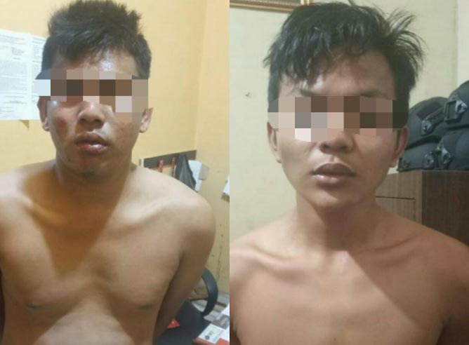 PELAKU JAMBRET-Arman dan Usup dua pelaku jambret yang gagal beraksi di kawasan Veteran Banjarmasin Timur, kini dijebsloskan ke penjara Polsek Bantim, Rabu (30/1/2019) malam sekitar pukul 23.00 Wita. (foto:ist)