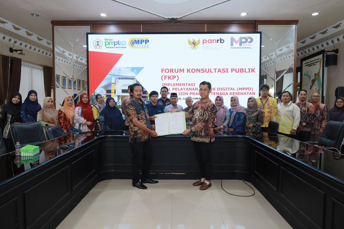Marabahan, BARITOPOST.CO.ID – Pemerintah Kabupaten Barito Kuala melalui Dinas Penanaman Modal dan Pelayanan Satu Pintu (DPMPTSP) bersama Dinas Kesehatan Barito Kuala melaksanakan acara Forum Konsultasi Publik (FKP) terkait Implementasi Mal Pelayanan Publik Digital (MPPD) untuk Izin Praktek Tenaga Kesehatan.