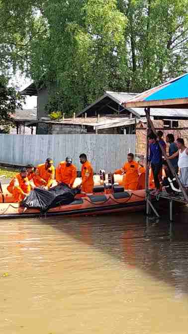 Sebelumnya di sungai dekat Pelabuhan Bawang itu mayat mengapung pertama kali dilihat Amat warga setempat. Lalu kepada warga dilaporkan ke pihak Basarnas hingga petugas relawan tersebut langsung mengevakuasi mayat tersebut.