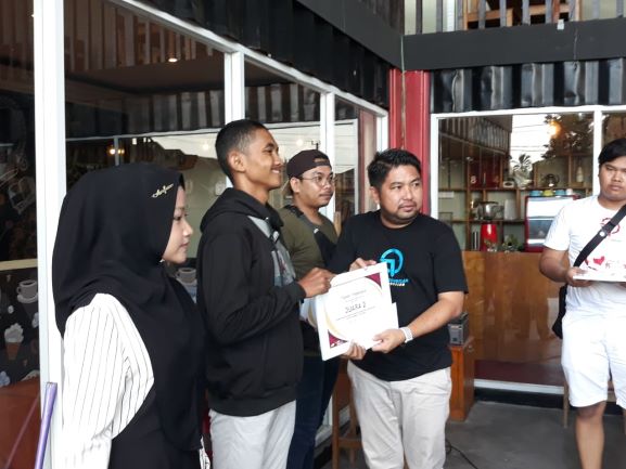 M. Sarifuddin SE, memberikan apresiasi kepada peserta lomba Pestival Film Pendek destinasi wisata Tanbu di cafe Big Coffe Simpang Empat. (foto: hali)
