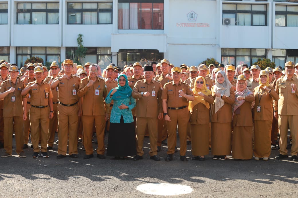 Apel itupun ditutup dengan berfoto bersama seluruh ASN. (Adv/Wke, Foto : Dokpim)
