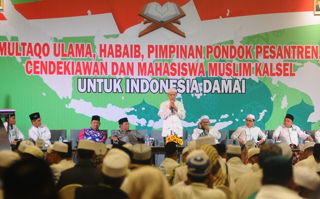 Seruan itu disampaikan melalui forum bertajuk Multaqo Ulama, Habaib, Pemimpin Pondok Pesantren, Cendekiawan dan Mahasiswa Muslim di Kalimantan Selatan di Ballroom Calamus Rattan Inn Banjarmasin, Rabu (15/5) pukul 16.00 wita.