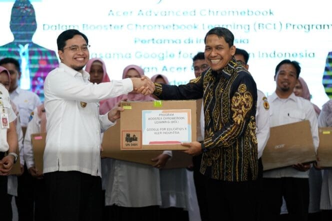 Acara dirangkai dengan penyerahan acer advanced chromebook dalam booster chromebook learning (BCL) programs tahun 2024 kepada 30 satuan Pendidikan Dasar dan Menengah Dinas Pendidikan HST.