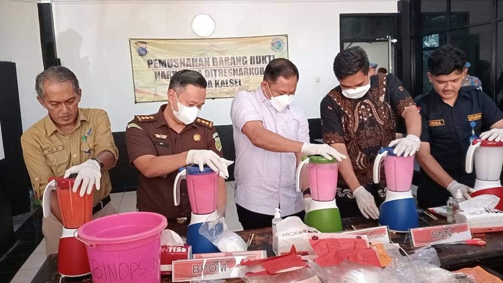 Turut hadir dalam pemusnahan tersebut perwakilan Kejaksaan Tinggi Kalsel, BNNP Kalsel, Balai POM Banjarmasin, perwakilan penasehat hukum dan mahasiswa hukum ULM.
