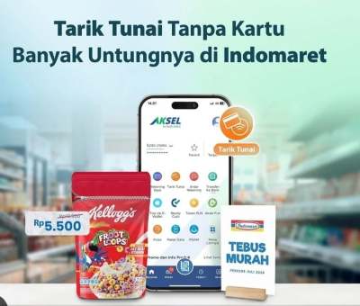 * Promo berlaku untuk layanan tarik tunai tanpa kartu (cardless) melalui AKSEL by Bank Kalsel di Indomaret