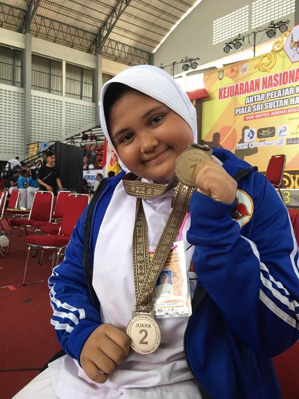 Banjarmasin, BARITO – Pesilat Banjarmasin, Andrina Neysa Pancarmarinahapsari Suryowardojo menorehkan prestasi mengembirakan. Putri pasangan Soesanto Eko Wardoyo dan Yenny F Luntungan itu memborong tiga medali saat mengikuti Kejuaraan Nasional (Kejurnas) Silat Perisai Diri yang berlangsung 18-22 Desember 2019 di GOR Sritex Arena Solo, Jawa Tengah (Jateng).