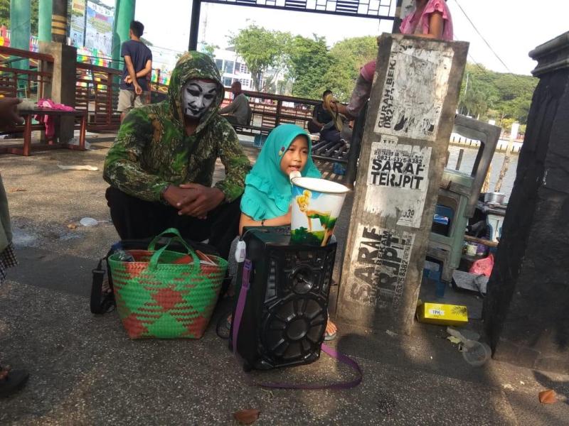 Banjarmasin, BARITO – kreatifitas tanpa batas, untuk menarik simpatik warga, Yuli dan anaknya bernama Malika, pengamen jalanan ini pertunjukan penampilan yang berbeda dari pada pengamen biasanya.