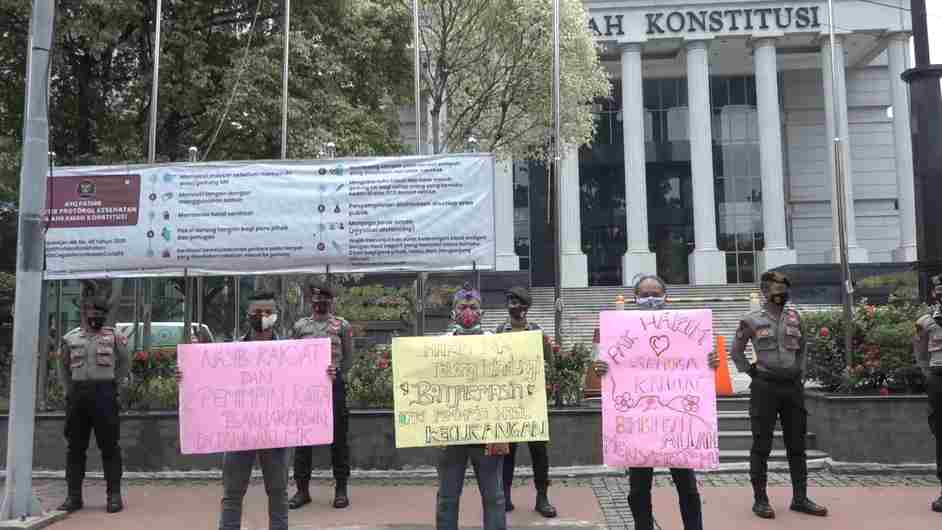 Jakarta, BARITO – Jelang putusan hasil sengketa Pemilihan Kepala Daerah (Pilkada) Kota Banjarmasin Tahun 2020 oleh Mahkamah Konstitusi (MK), sejumlah massa mendatangi Gedung Mahkamah Konstitusi untuk melakukan aksi damai. Aksi damai sendiri dilakukan untuk meminta MK mendiskualifikasi pasangan calon petahana sesuai dengan ketentuan Pasal 71 ayat (5) Undang-Undang Nomor 10 Tahun 2016 tentang Perubahan Kedua atas Undang-Undang Nomor 1 Tahun 2015 tentang Penetapan Peraturan Pemerintah Pengganti Undang-Undang Nomor 1 Tahun 2014 tentang Pemilihan Gubernur, Bupati, dan Walikota menjadi Undang-Undang (“UU Pilkada”) dan menetapkan AnandaMu yang memperoleh suara terbanyak ke-2 sebagai pemenang Pilkada Kota Banjarmasin 2020.