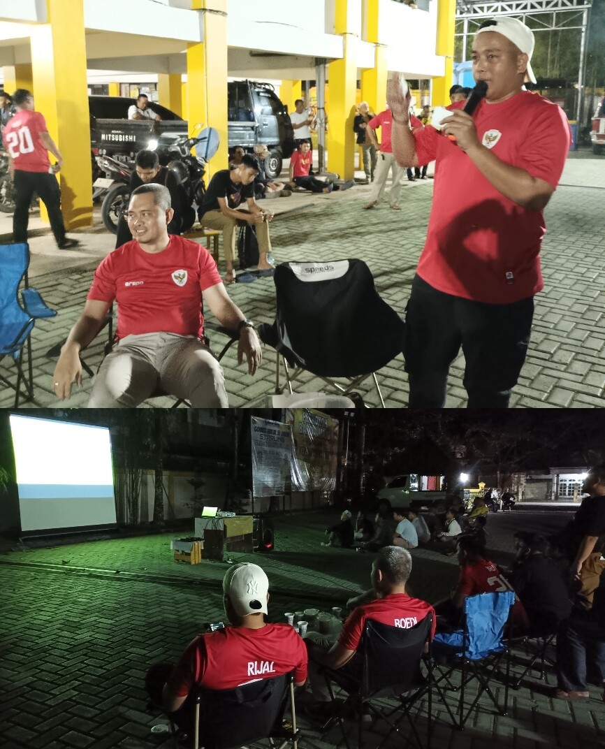 Suasana nonbar Dispora Kalsel bersama wartawan olahraga pada Piala Asia U-23, Senin (29/4/2024) malam di Halaman Kantor Dispora Kalsel. (foto: Tolah/brt)