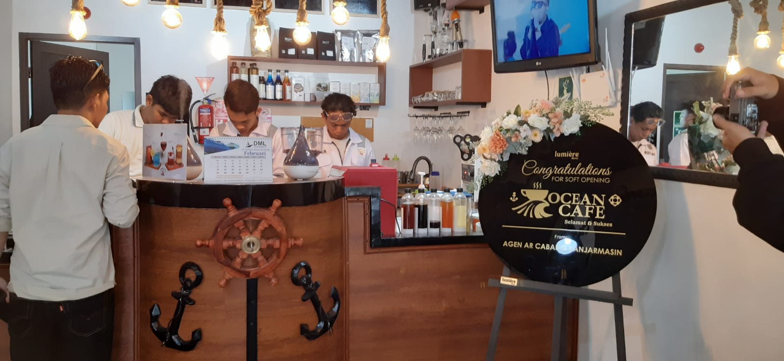 Banjarmasin, BARITOPOST.CO.ID – Industri kuliner di kota Banjarmasin semakin bertambah meriah dengan kehadiran Ocean Cafe yang mengusung konsep unik ala kapal pelayaran. Pemilik Ocean Café, Capt. Acup Priadi M.mar, dengan bangga mempersembahkan inovasi di bidang food and beverage, khususnya untuk warga kota Banjarmasin.