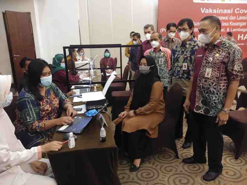 Salah satunya dengan cara menggandeng Pemerintah Kota Banjarmasin dan Forum Komunikasi Jasa Keuangan (FKJK) Provinsi Kalsel, untuk melakukan vaksinasi Covid-19 kepada para pegawai di industri keuangan yang ada di Kota Banjarmasin, Kamis (29/4/2021) di Hotel Rattan In Banjarmasin.