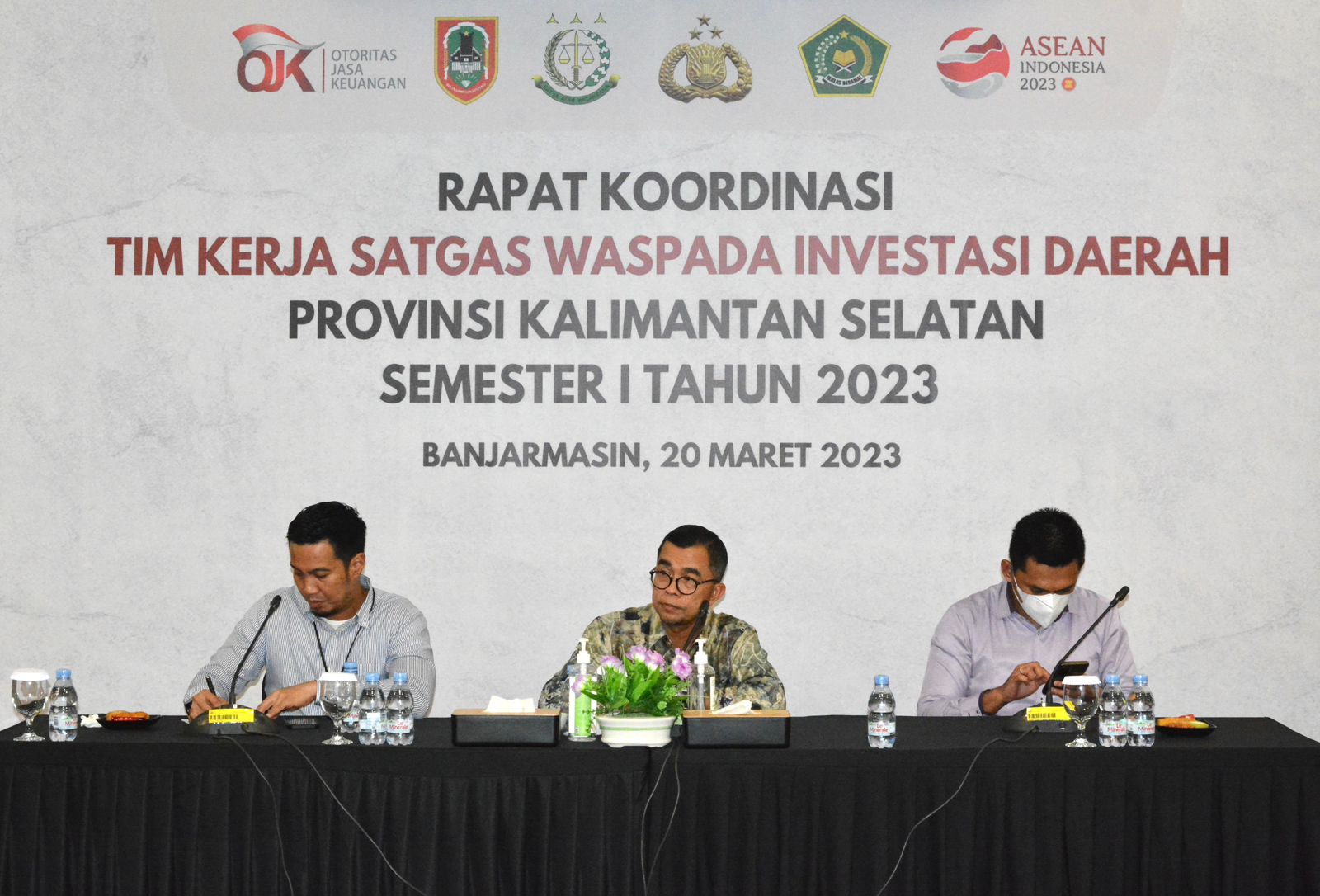 Banjarmasin, BARITOPOST.CO.ID – Otoritas Jasa Keuangan (OJK) menggelar Rapat Koordinasi (Rakor) Satuan Tugas Waspada Investasi (SWI) Daerah Provinsi Kalimantan Selatan (Kalsel).