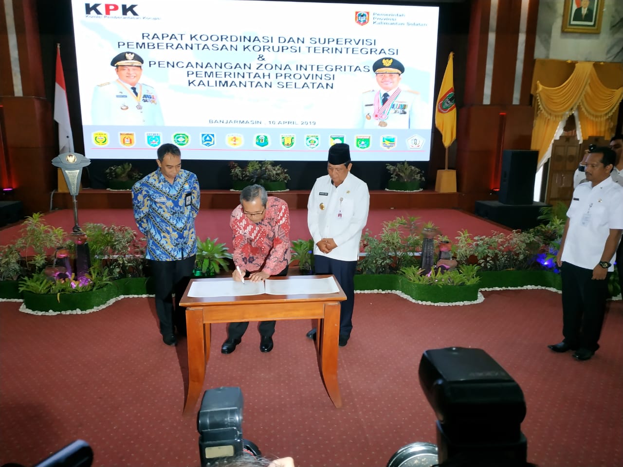 Penandatanganan Zona Integritas Pemprov Kalsel disaksikan Pimpinan KPK dan Ombudsman RI Perwakilan Kalsel di Mahligai Pancasila, Rabu (10/4).(foto:ist/brt).