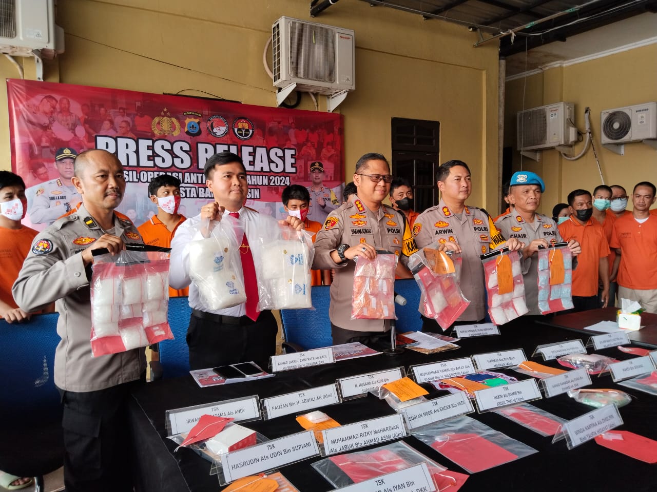 Banjarmasin, BARITOPOST.CO.ID – Polresta Banjarmasin berhasil mengamankan 28 tersangka hasil Operasi Antik Intan yang digelar dari 17 – 30 Mei tahun 2024. Adapun total barang bukti secara keseluruhan yang berhasil diamankan yakni sebanyak 6.7 Kg Sabu-sabu, 2.011 butir ekstasi, dan 10,81 Gram serbuk Ekstasi