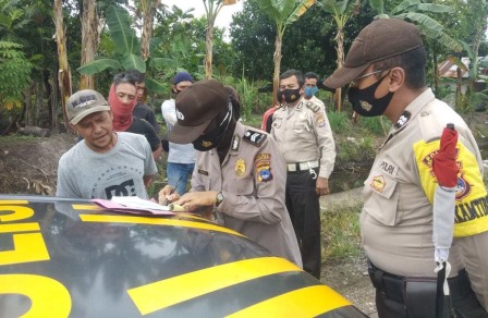 Pada saat melaksanakan Patroli memberikan imbauan kepada warga masyarakat yang sedang beraktifitas dan ada yang tidak menggunakan masker, kepada salah satu warga diberikan teguran humanis dan diberikan penjelasan serta himbauan untuk mematuhi protokol kesehatan sesuai anjuran Pemerintah berdasarkan Inpres No.6 Th. 2020 tentang Peningkatan Disiplin dan Penegakan Hukum Protokol Kesehatan dalam pencegahan dan pengendalian covid-19. Kemudian diberikan sangki teguran tertulis oleh anggota Polsek Banjarbaru Barat.