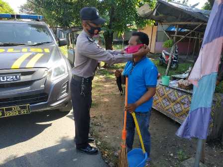 Terapkan Perwali Banjarbaru Nomor 27 Tahun 2020 Polsek Banjarbaru Barat gelar Operasi Yustisi Covid-19 Dalam Penegakan Peraturan Walikota Banjarbaru Nomor 27 Tahun 2020 Dilanjutkan Penegakan disiplin dan Pembagian Masker kepada pelanggar protokol kesehatan di Pasar tradisional jalan sukamara Kelurahan Landasan Ulin Utara Kecamatan Liang Anggang Kota Banjarbaru, Kamis (17/9/2020).