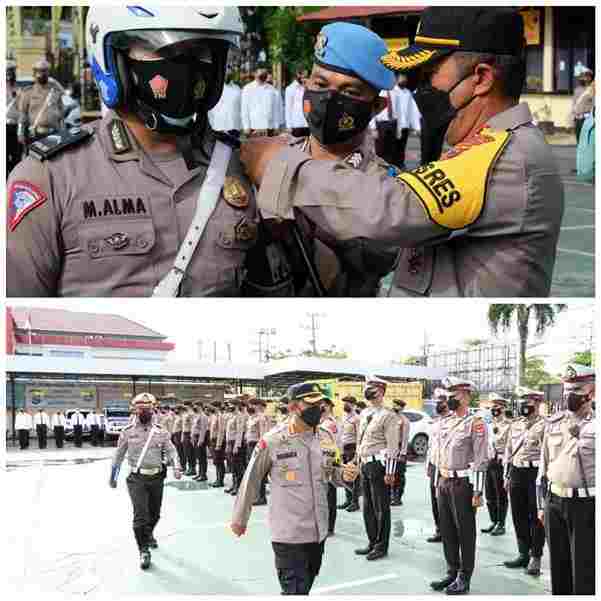 Banjarmasin, BARITO-Pelaksanaan operasi Zebra Intan 2021 ditandai dengan penyematan pita kepada perwakilan personil oleh Kapolresta Banjarmasin Kombes Pol Rachmat Hendrawan ditengah pamdemi Covid-19, Senin (15/11/2021) pagi. Kegiatan apel yang mengenakan masker itu berlangsung di halaman Mapolresta Banjarmasin dan dilaksanakan sampai delapan hari kedepan.
