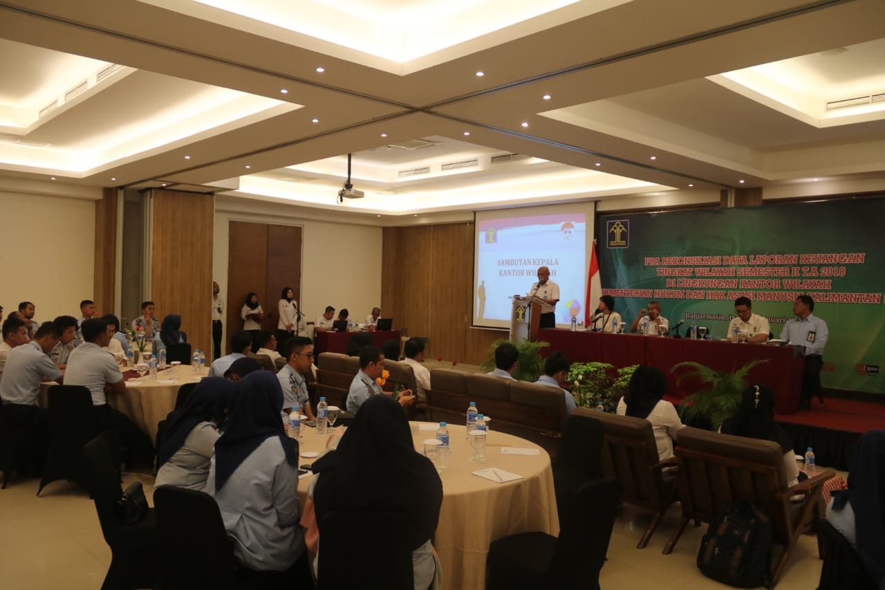 Kantor Wilayah Kementerian Hukum dan HAM (Kanwil Kemenkumham) Kalimantan Selatan menyelenggarakan Pra Rekonsiliasi Data Laporan Keuangan Tingkat Wilayah Semester II T. A 2018 di Lingkungan Kanwil Kemenkumham Kalsel .