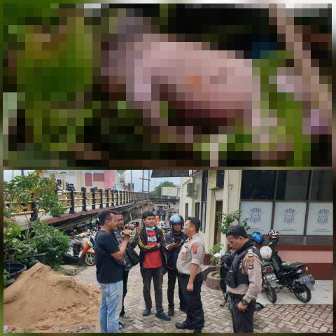 Banjarmasin,BARITO – Warga yang melintas di kawasan Jalan Sudimampir digegerkan dengan temuan  orok bayi mengapung di bawah jembatan Antasari, Banjarmasin Tengah, Senin (23/3) sore. Kemudian setelah menyangkut di pampangan sungai, orok bayi terlihat  ada tali pusarnya yang cukup panjang.
