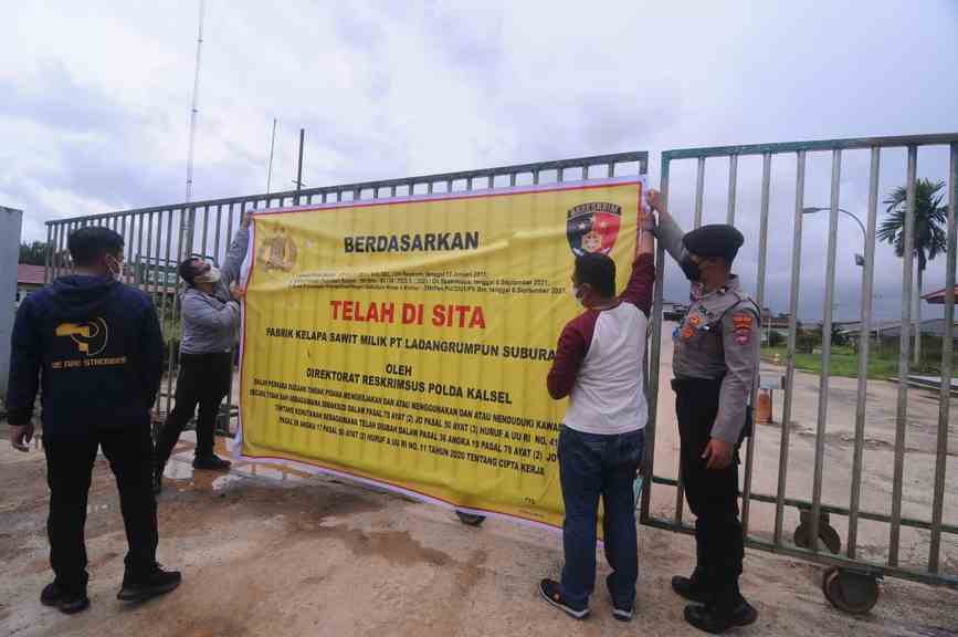 Batulicin, BARITO – Pabrik kelapa sawit pengolahan Crude Palm Oil (CPO), PT Ladangrumpun Suburabadi (LSI) Minamas Group, di Kecamatan Angsana, Kabupaten Tanah Bumbu disita jajaran Subdit IV Dit Tipidter Ditreskrimsus Polda Selasa (7/9/2021).