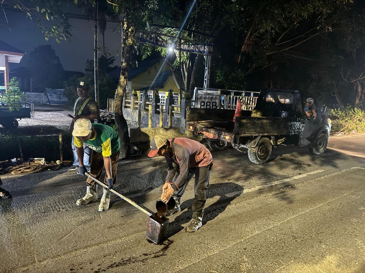 Pengembalian jalan belas galian pipa PAM Bandarmasih di Jalan HKSN, Banjarmasin Utara.