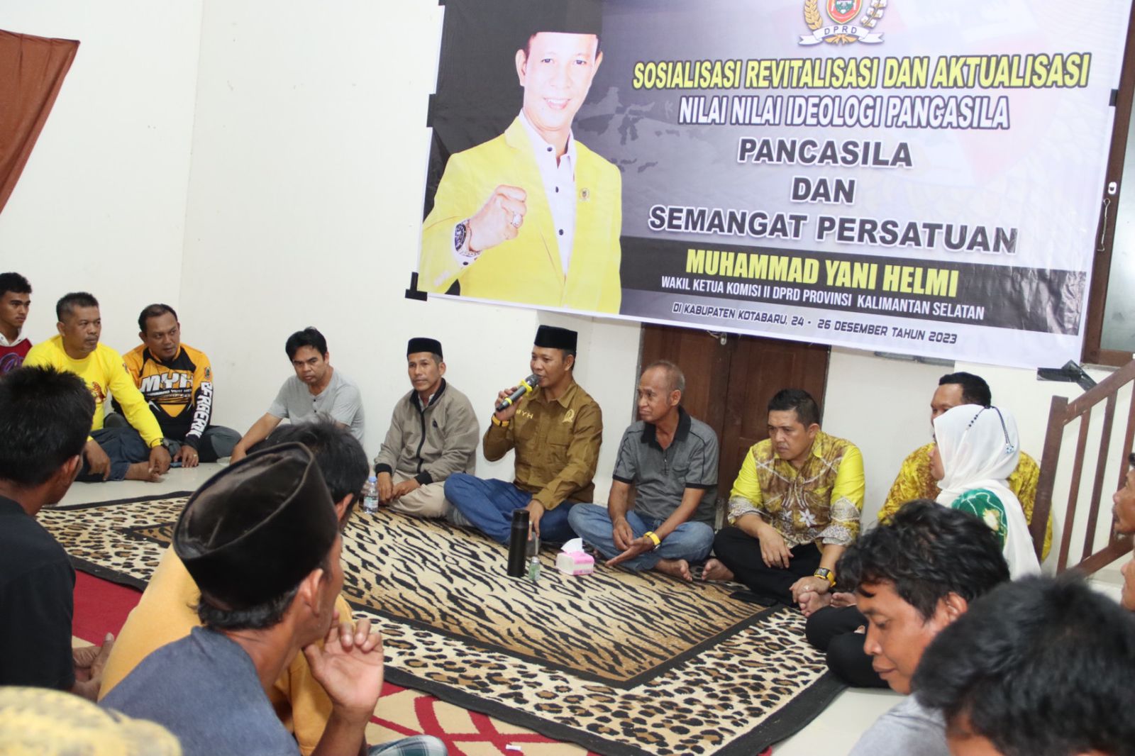 Permintaan itu disampaikan politisi Golkar ini saat menyampaikan materi Sosialisasi Revitalisasi dan Aktualisasi Nilai-Nilai Ideologi Pancasila di Desa Teluk Aru, Kecamatan Pulau Laut Kepulauan, Kabupaten Kotabaru, Senin (25/12/2023).