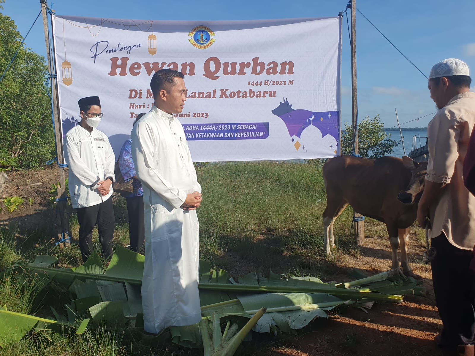 Daging hewan qurban didistribusikan diantaranya diserahkan ke warga sekitar Lanal Kotabaru, pondok pesantren, panti asuhan, Anak yatim/piatu, nelayan binaan, tukang becak, warga masyarakat kurang mampu serta rekan-rekan media.