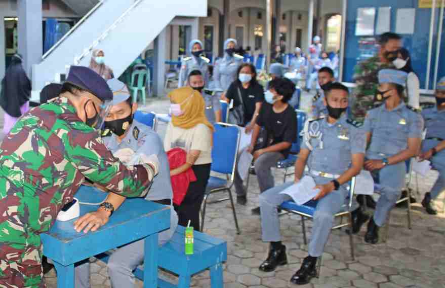 Lanal Banjarmasin bekerjasama dengan Dinas Kesehatan Kota Banjarmasin dan Bidokkes Polda Kalsel, menggelar vaksinasi untuk warga, di Aula Mako Lanal Banjarmasin, Senin (28/06/2021).
