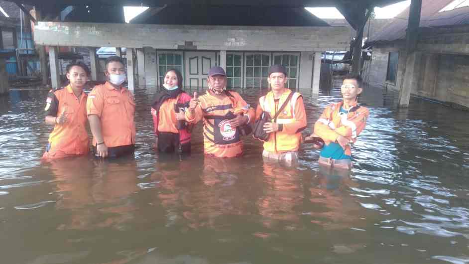 Bati-Bati, BARITO –  Tim Reaksi Cepat (E-TRC) 333  Banjarmasin turut serta dalam melakukan pemantauan banjir yang ada di Kabupaten Tanah Laut (Tala), Rabu (13/1/2021). Sebanyak tujuh kecamatan terendam air hingga pihak relawan membagi di beberapa pos pantau bersama BPBD dan relawan lainnya.