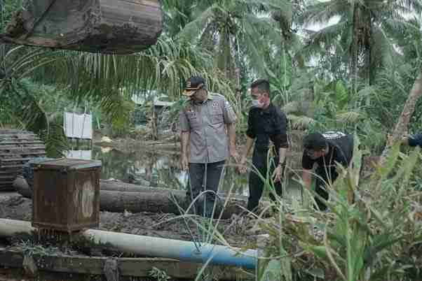 Marabahan, BARITO – Untuk memastikan sejauhmana progress pembangunan Irigasi di Sungai Raya Kecamatan Cerbon Kabupaten Barito Kuala. Ketua DPRD Provinsi Kalimantan Selatan DR (HC) H Supian HK, SH, MH melakukan pemantauan langsung di lokasi pembangunan Irigasi tersebut, Selasa (30/11/2021).