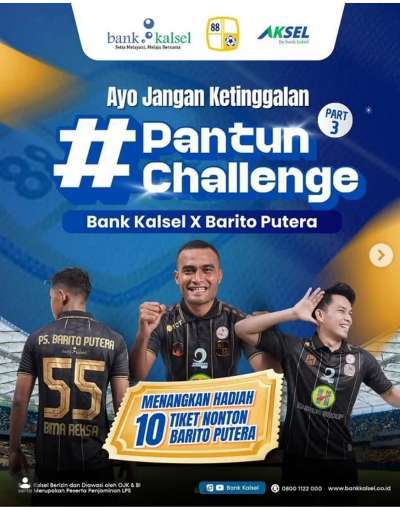 “Ayo ikutan #PantunChallenge bareng Bank Kalsel & Barito Putera! Tulis pantun paling kreatifmu di kolom komentar dan menangkan 10 tiket nonton Barito Putera!” tulis Bank Kalsel di Instagram.