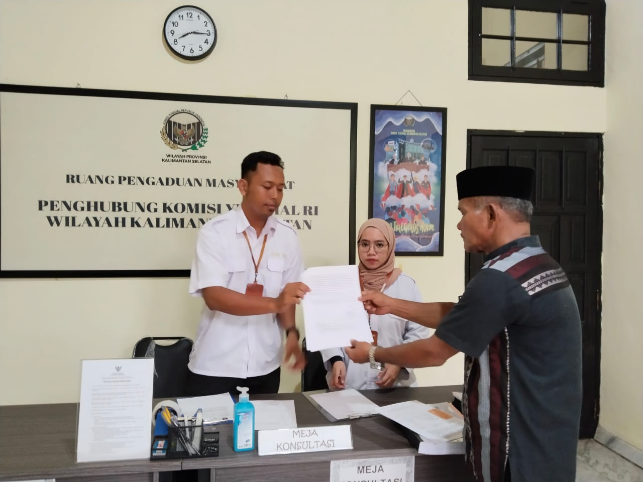 Dengan menyerahkan berkas dan surat bukti pertimbangan putusan hakim Pengadilan Negeri Banjarmasin, laporan itu diterima oleh Yudha selalu staf PKY Kalsel di Jalan Gatot Subroto setempat.