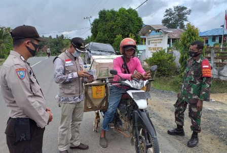 Kegiatan yang dilakukan secara mobile di sepanjang jalan masih ditemukan masyarakat yang tidak menggunakan masker sehingga petugas memberikan teguran lisan sekaligus memberikan masker kepada masyarakat yang kedapatan tidak mengunakan masker.