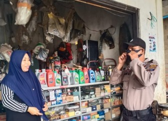 Bripka Arif Sujarwadi menyampaikan himbauan kepada warga untuk mematuhi protokol kesehatan dengan menerapkan 3M (Memakai Masker, Memcuci Tangan, Menjaga Jarak).