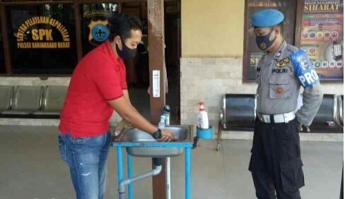 “Pengawasan dan pendisiplinan kepada masyarakat untuk tetap mematuhi protokol kesehatan seperti memakai masker, jaga jarak dan mencuci tangan menggunakan sabun di air yang mengalir”. ucap Aiptu Suyono.