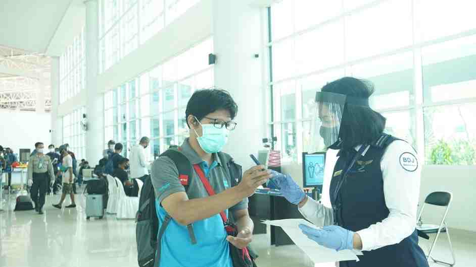 Kini para penumpang pesawat di daerah Pulau Jawa Bali cukup menunjukkan hasl rapid tes antigen yang berlaku di wilayah tersebut.afd