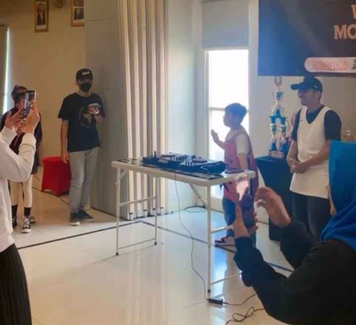 2022 Banjarmasin, BARITO – SUASANA lantai 2 Fave Hotel Jalan A Yani Km 2 Kota Banjarmasin, Minggu, (23/1/2022) sore mendadak heboh dengan teriakan teriakan histeris dan tepuk tangan. Ini setelah Radika Dhafi Pratama (RDP) unjuk kebolehannya sebagai Disc Jockey (DJ) cilik sebagai bintang tamu pada acara Kompetisi Dance se Kalimantan yang digelar Iron Wood Management. Para peserta kompetisi yang datang dari beberapa dance club’ di Kalimantan pun ikut bergoyang heboh termasuk dancer cilik dan para ibunya ikut bergoyang.