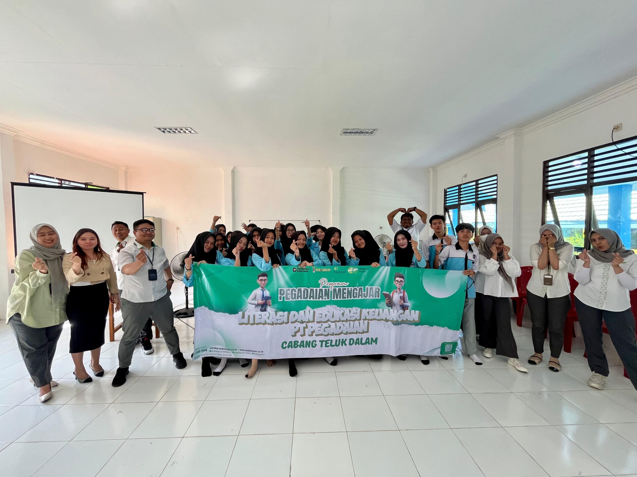 - Cabang Teluk Dalam menyelenggarakan kegiatan di SMK Bina Banua Banjarmasin, di mana para siswa diajak mengenal dasar-dasar pengelolaan keuangan, konsep menabung, dan manfaat memiliki aset seperti emas untuk masa depan.