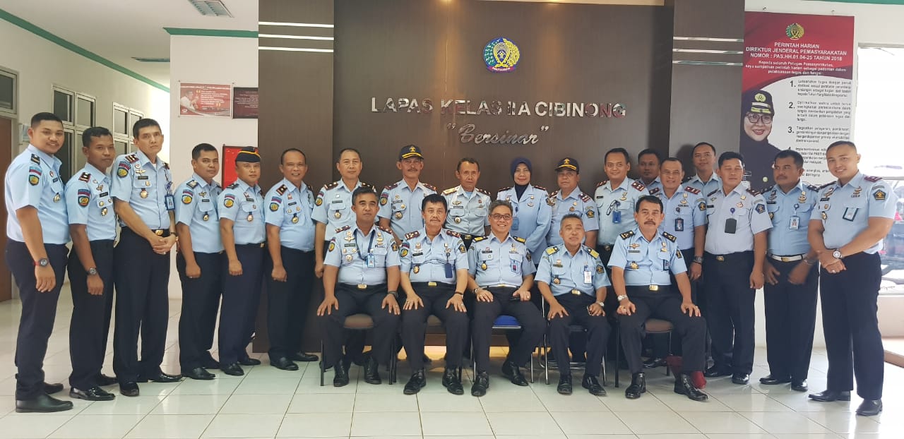 Kepala Lapas Cibinong, Agung Krisna dan Koordinator Lapas se-Bogor Raya, Teguh Wibowo menerima rombongan Jajaran Pemasyarakatan dari UPT Se-Kalimantan Selatan.