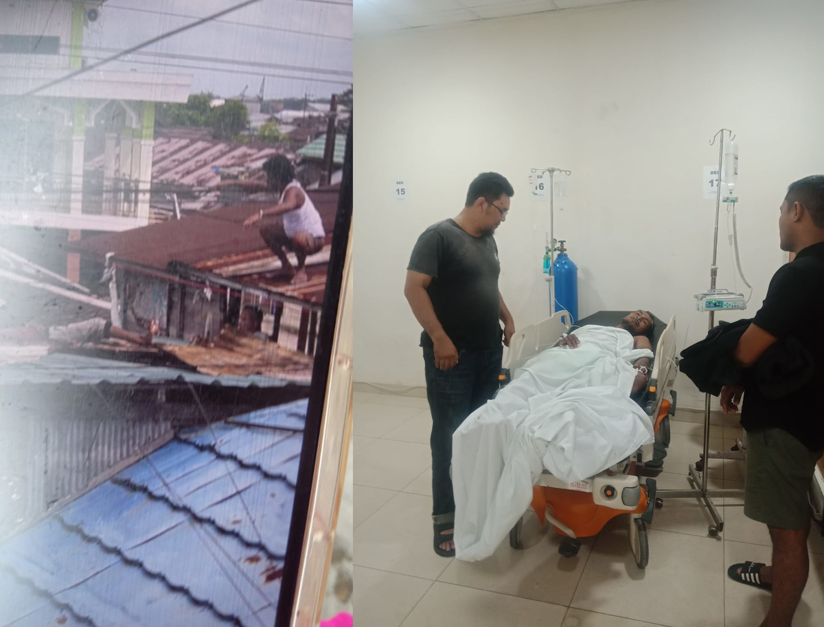 Saat itu korban sedang memperbaiki gudang Meubel Kasran, namun saat memasang seng ia mengalami laka kerja.